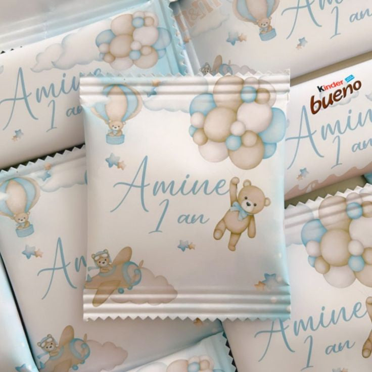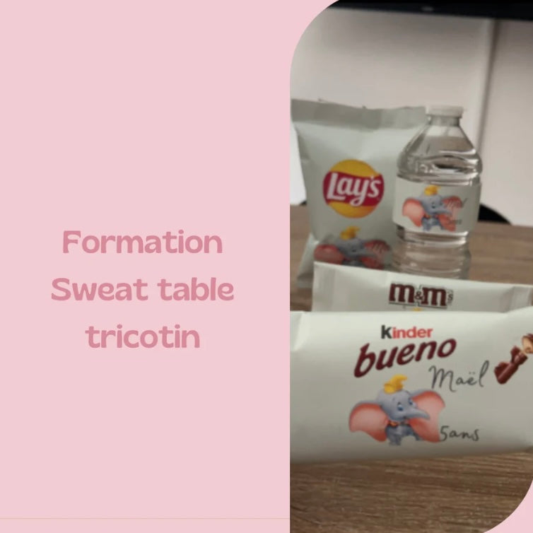 - Personnalise des bonbons, snacks, boissons (Kinder, M&M’s, chips, Caprisun…)